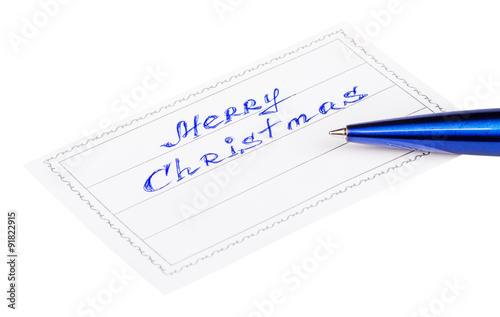 pen and badge with the inscription Merry Christmas isolated on a white background