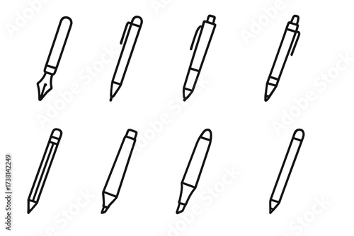 Pen and pencil outline icon set. Collection of writing and drawing tools. Minimalist linear pictogram pack with editable stroke. Vector for web, apps, school, office design.