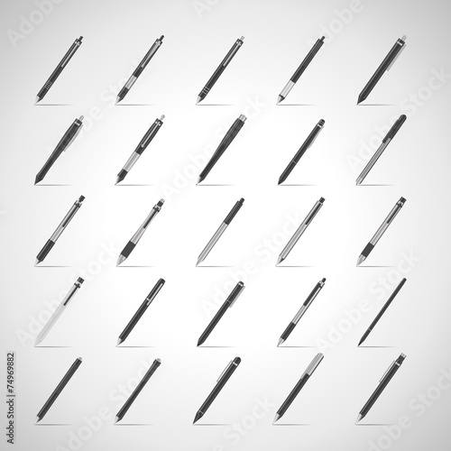 Pen Icons Set - Isolated On Gray Background - Vector Illustration, Graphic Design, Editable For Your Design