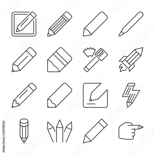Pencil icons set. Pencils different variations, linear icon collection. Line with editable stroke