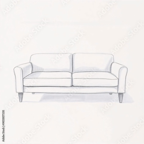 Pencil sketch illustration of a sofa with a white cushion, simple design, and clean aesthetic.