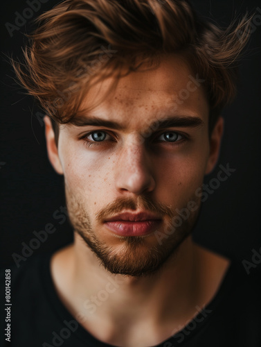 Pensive Young Man with Freckles and Intense Gaze