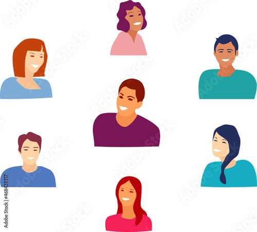 People avatar set. Laughing Boys and girls. Students. Vector illustration. Flat style
