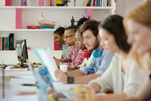 People working at conference table in office