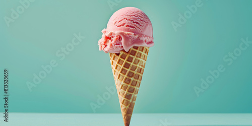 Perfect Scoop of Strawberry Ice Cream on a Waffle Cone