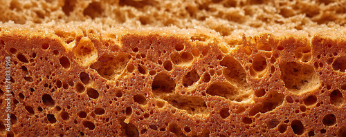 Perfectly baked bread showcasing a golden crust and airy texture in a close-up view of its interior structure