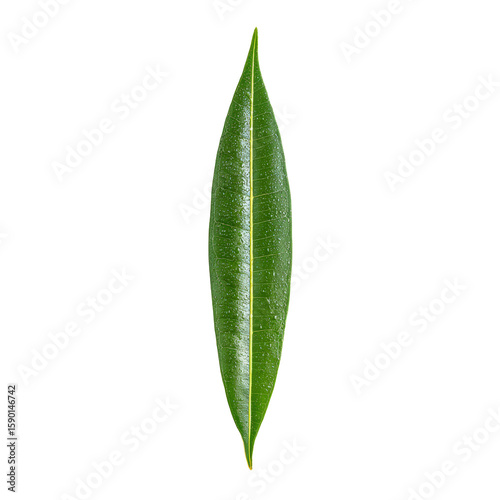 Perfectly Centered Mango Leaf Showing Gloss Midrib and Fresh Orchard Tone, with Transparent Background