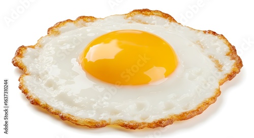 Perfectly Cooked Fried Egg with Golden Yolk and Crispy Edges Isolated on White Background