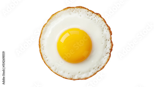 Perfectly fried egg, sunny-side up, golden yolk, white, crispy edges, isolated on white background.