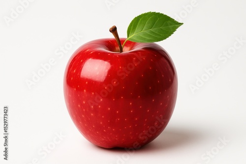 Perfectly Ripe Juicy Red Apple with a Shiny Skin and a Small Green Leaf Isolated on a Clean White Background Symbol of Health Freshness and Temptation