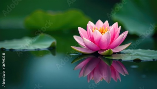 Perfectly symmetrical water lily reflection in lake, tranquility, reflection photography, lake