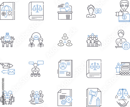 Performance management outline icons collection. Performance, Management, Appraisal, Improvement, Tracking, Measures, Goals vector and illustration concept set. Objectives, Feedback, Productivity