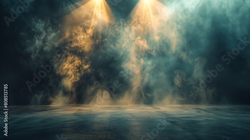 Performance stage with lights on and smoke billowing