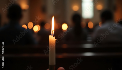 Person holding candle during a ceremony in a dimly lit church