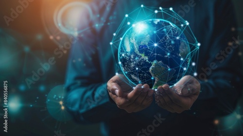 person holding planet with connections. globalization concept, digitalization, connections, business, digital business, network, businessman