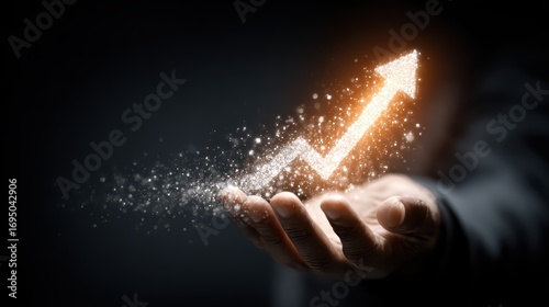 Person Illustrating Empowerment with Glowing Upward Arrow on Black Background, Ideal for Inspiring Campaigns and Branding.