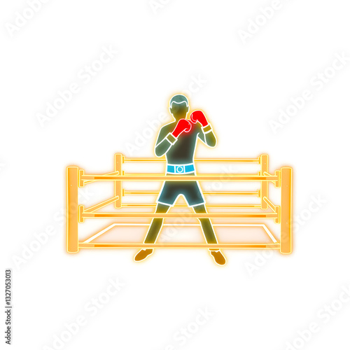 Person in boxing ring holographic 3D icon. neon symbol vector illustration isolated on white background. Generative AI