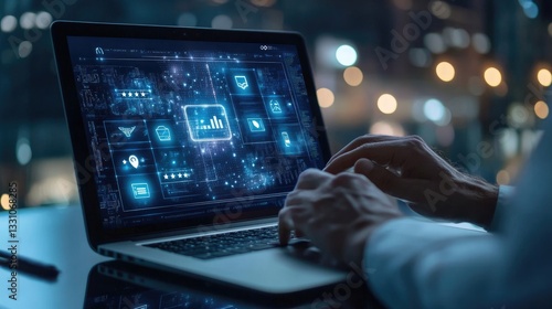 Person interacting with digital customer feedback and star rating icons on a laptop screen