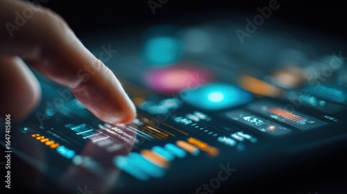 Person Interacting with Digital Interface Displaying Data Visualization, Futuristic Technology, Modern User Experience and Advanced Engineering