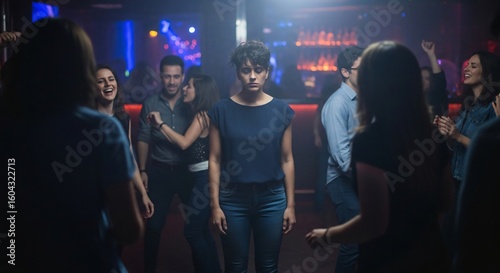 Person Isolating Themselves in a Crowded Room, Symbolizing the Impact of Negative Self Thoughts on Social Interaction