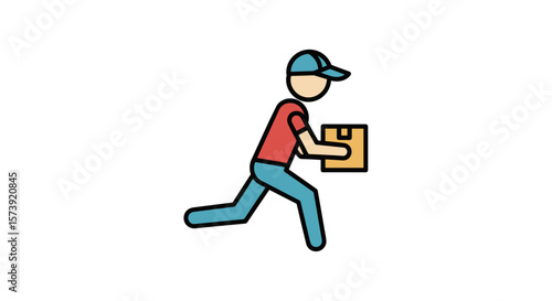 Person running with box in motion on isolated transparent background