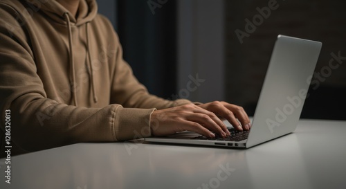 Person Typing on Laptop in Dimly Lit Workspace, Focused on Remote Work, Freelancing, or Cybersecurity Operations