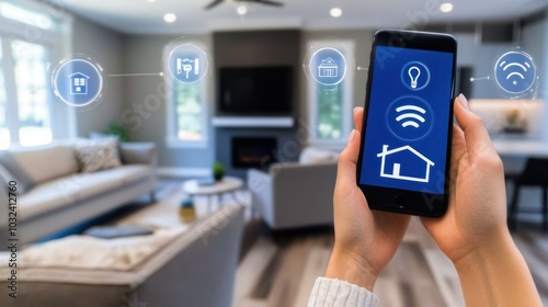 Person using a smartphone to control smart home devices