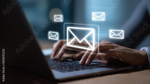 Person using laptop computer sending emails online digital communication technology concept
