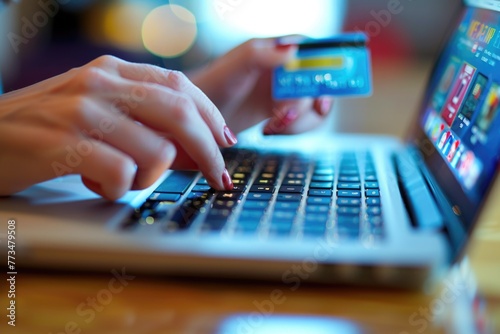 Person using laptop with credit card for online shopping. Suitable for e-commerce concepts
