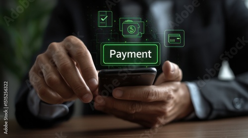 Person using smartphone to complete digital payment in a modern setting during daytime