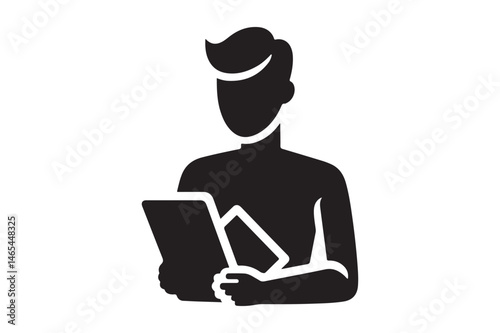 Person Using Tablet Icon Digital Device Silhouette for Tech and Education