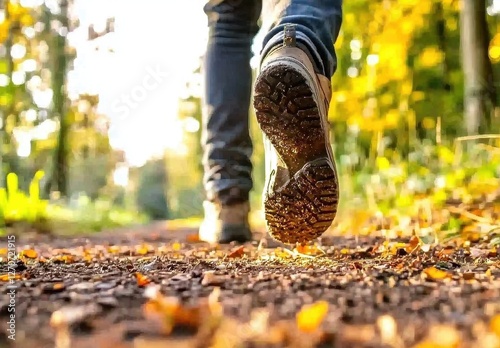 Person Walking on Leafy Pathway in Autumn Forest Setting