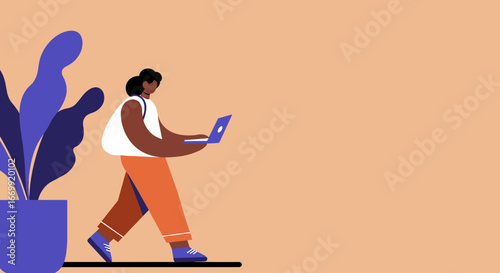 Person walking with a laptop, embodying remote work, flexible lifestyle, and digital connectivity. Ideal for business, technology, or lifestyle concepts.