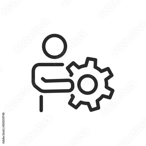 Person with gear, linear style icon. technical support and service. Editable stroke width