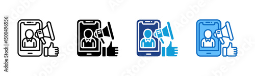 Personal Branding - Multi Style Icon - Smartphone with user profile, megaphone, and thumbs up — representing personal brand and digital presence