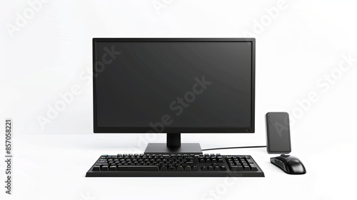 Personal comuter isolated. Display, case, keyboard and mouse. Isolated screen for mockup