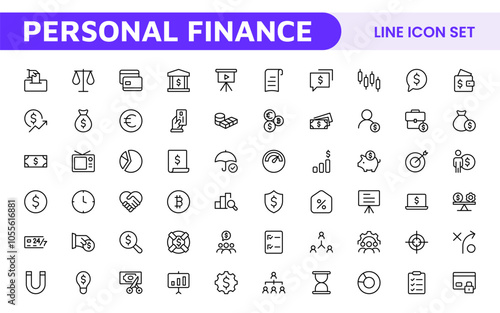 Personal Finance Icon Set. Sleek and intuitive icons for budgeting; saving; and investing; perfect for financial apps; tools; and websites to empower users in managing their money effectively.