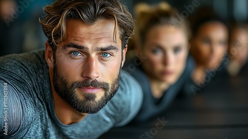Personal trainer assisting clients with weight training, fostering a motivating environment