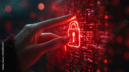 person's hand hovering over a glowing digital padlock, symbolizing secure data