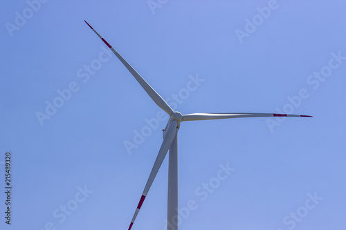 Perspective shot of windmill with open blue sky background in Izmir at Turkey