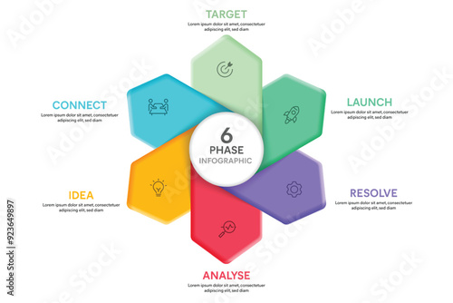 Petal Shape Infographic Template With 6 Options, Steps, Parts, Segments. Business concept. Marketing Infographic Vector Illustration.
