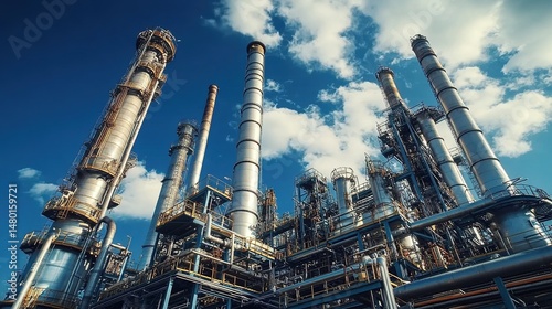 Petroleum Refinery with Chimneys and Industrial Structures