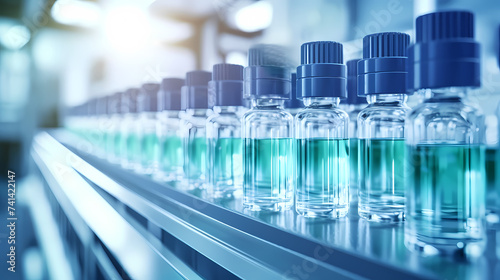 Pharmaceutical factory with conveyor line glass bottles and ampoules