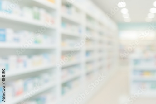 Pharmacy Drugstore with Soft Blur Abstract Background Featuring Medicine and Healthcare Products on Shelves for Health and Wellness Concepts