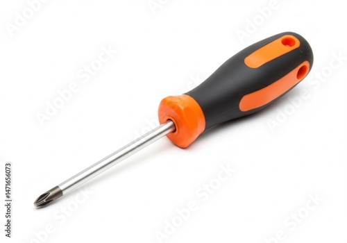 Phillips head screwdriver with black and orange handle isolated on a white background