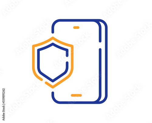 Phone protection line icon. Smartphone or Cellphone antivirus sign. Mobile accessories symbol. Colorful thin line outline concept. Linear style phone protection icon. Editable stroke. Vector