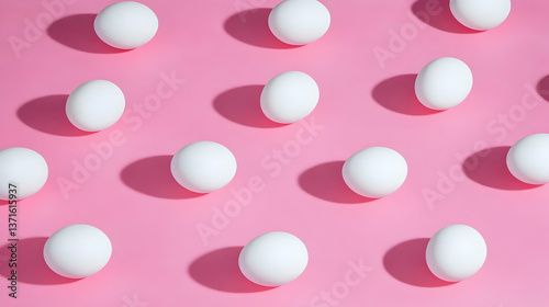 Photo of a Pattern of White Eggs on Pink Background with Shadows