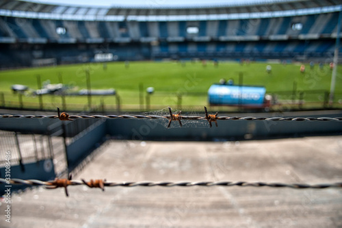 Photo of a soccer stadium. football stadium before the match.