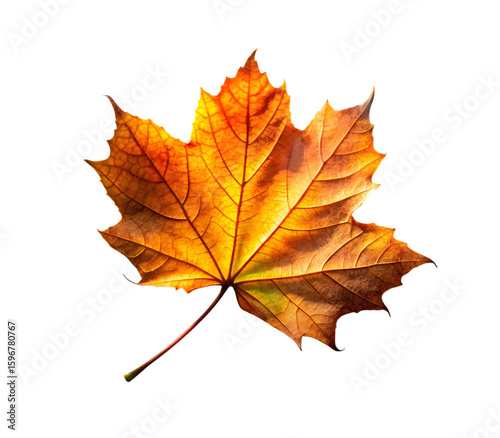 Photo of a vibrant orange maple leaf isolated on a transparent background in autumn