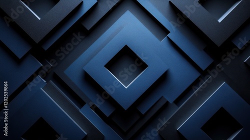 Photo of blue background with precise geometric figures for design, banner template, white space in the center of the page for text. Clean and modern abstract wallpaper.